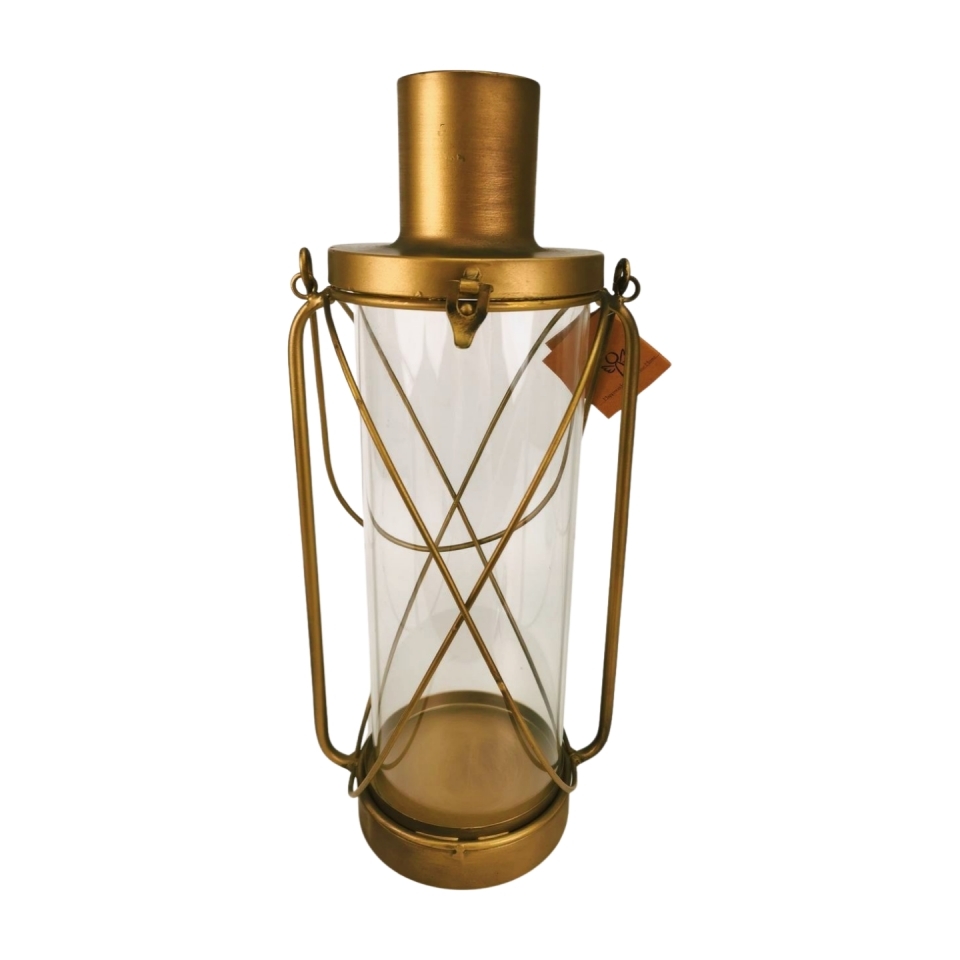 Zlatá kovová lucerna na svíčku 43 x 15 cm