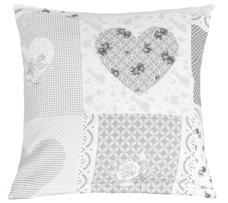Povláček flanelový - srdce patchwork šedý - 40x40cm