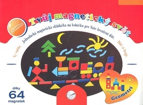 Tvůj magnetický svět je klasická magnetická hra, která obsahuje černou tabulku uzpůsobenou k umisťování magnetů ve tvaru základních geometrických tvarů, fajn je, že tvary jsou v základních barvách, děti si tak mohou zopakovat jak tvary, tak barvy. Hra výborně podněcuje fantazii a podporuje rozvoj jemné motoriky, děti mohou skládat zkrátka to, co se jim zlíbí. Pokud nemají dostatek fantazie, mohou využít předlohu.