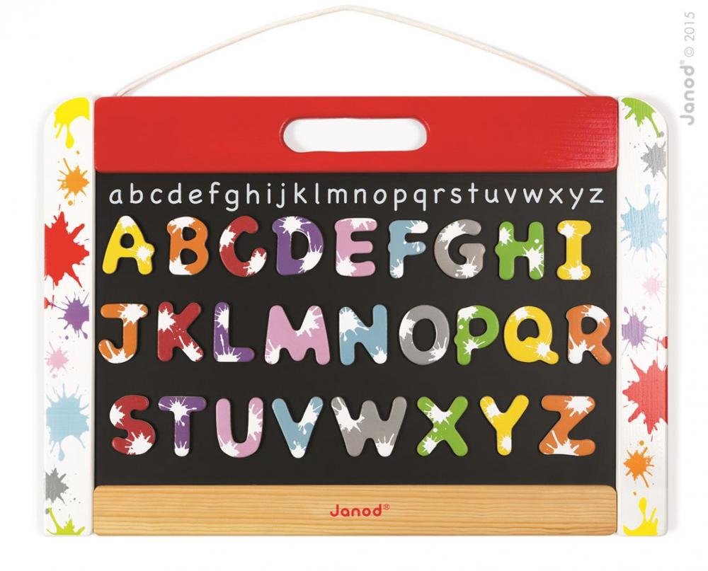 Dřevěná magnetická tabule Splash Janod s 28 písmeny oboustranná na zavěšení