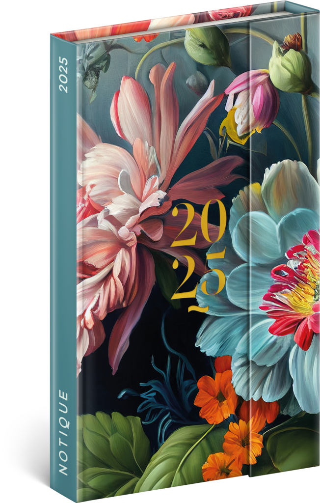 Diář 2025: Květiny je ideálním pomocníkem pro každého, kdo chce mít svůj čas pod kontrolou a zároveň si užít příjemný design. Jeho kompaktní rozměr 13 × 21 cm a praktická týdenní struktura zaručují, že budete mít všechny své plány přehledně na jednom místě.