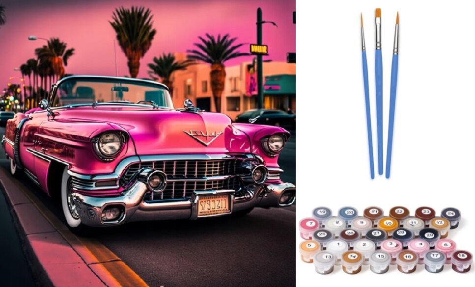 NORIMPEX Malování podle čísel: Růžový sporťák, plátno na rámu 40x50 cm