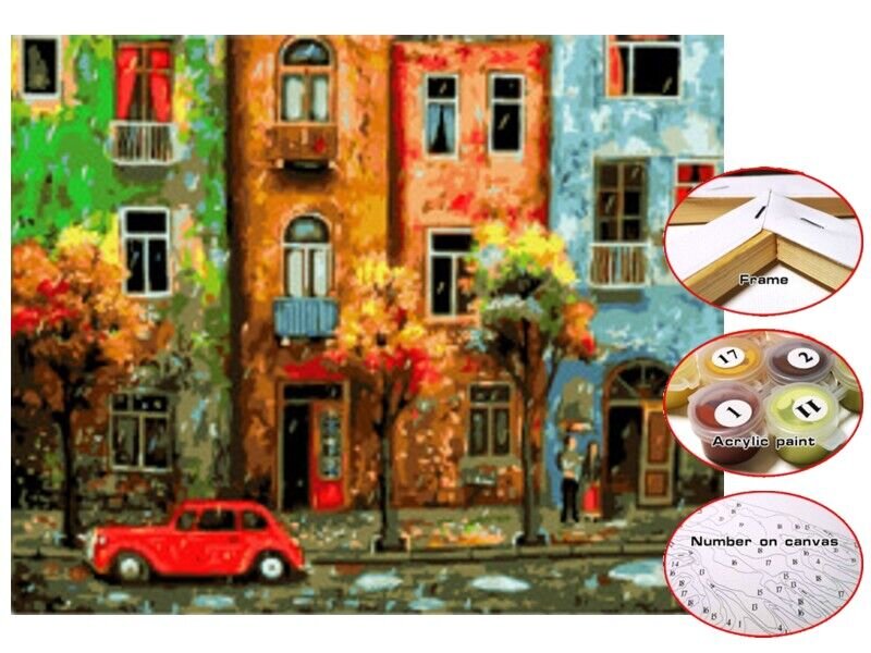 Plátno 30 x 40 cm maluj podle čísel - Domy