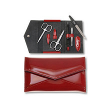 Solingen Manikúry Luxurious Manicure Set Fire 5 - Luxusní 5 dílná manikúra v červeném koženkovém pouzdře pro ženy
