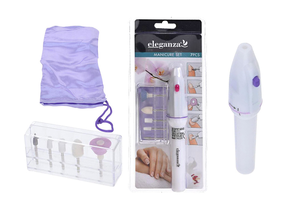 Obsahuje: Minibruska, pilníčky a leštící nástavec, box na nástavce, celkem 7 ks