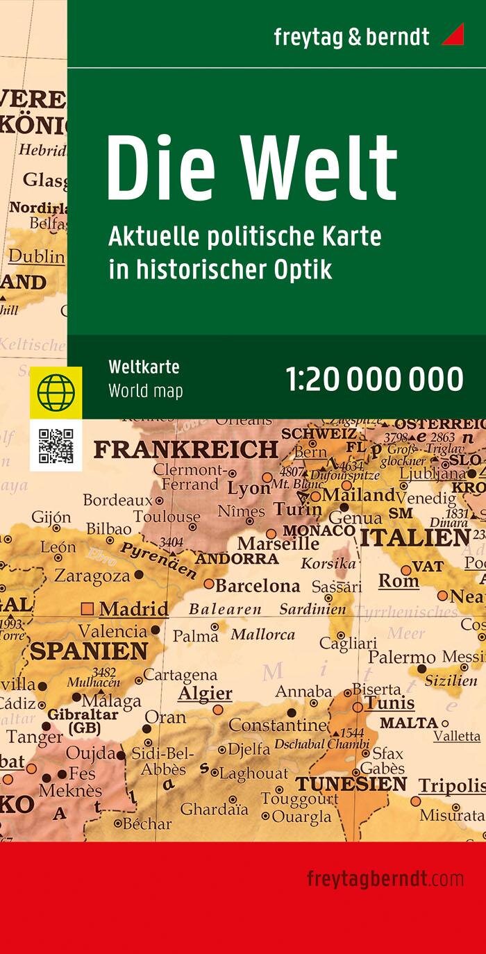 Weltkarte: Aktuelle Karte im antiken Stil, 1:20.000.000, Poster, freytag & berndt (německy)