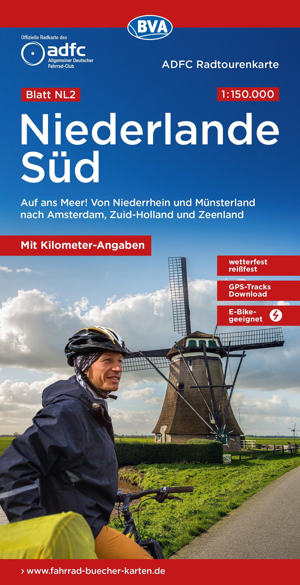 ADFC-Radtourenkarte NL 2 Niederlande Süd 1:150.000, reiß- und wetterfest, E-Bike geeignet, GPS-Tracks Download, mit Knotenpunkte (německy)