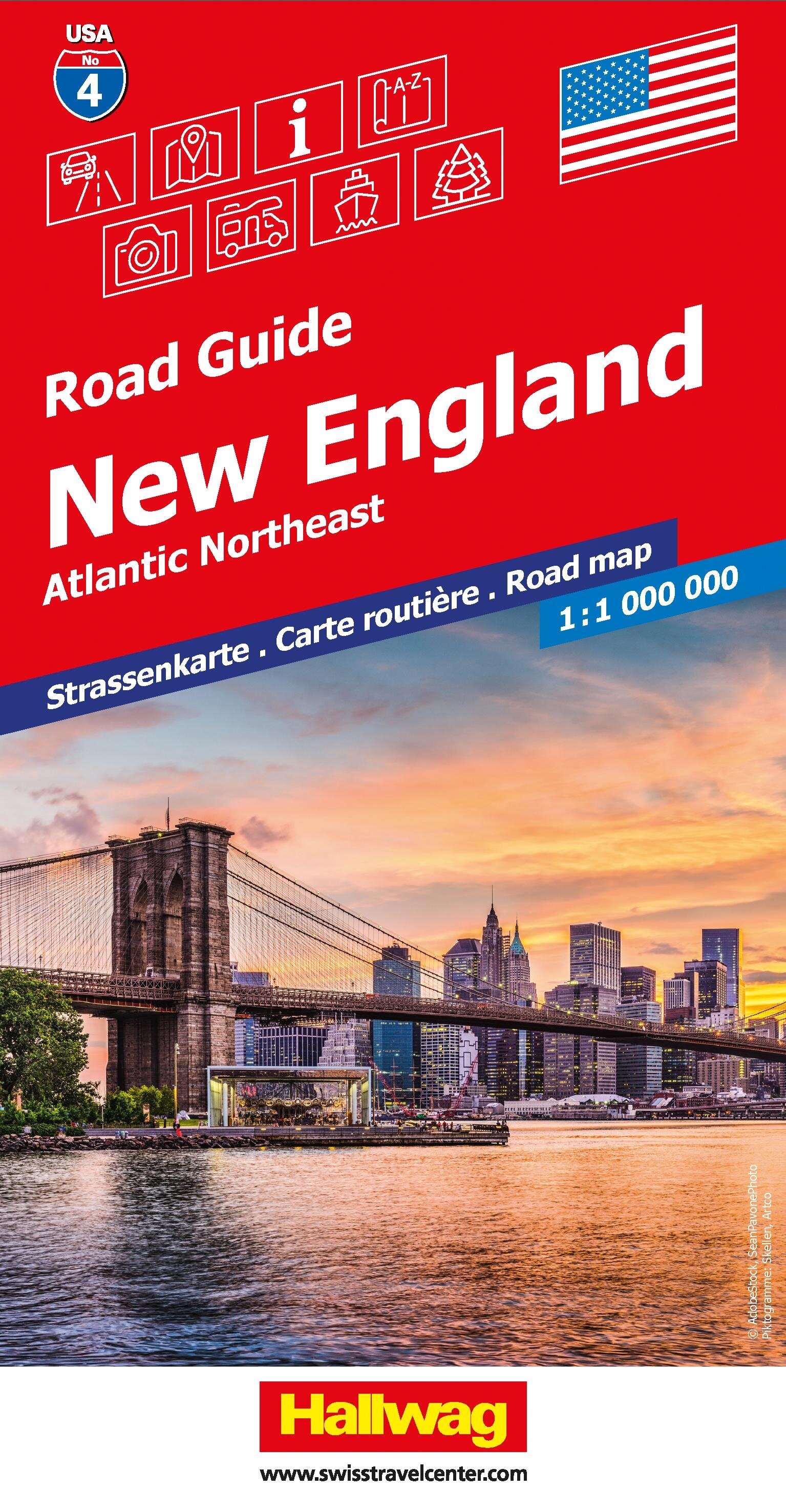 New England Strassenkarte 1:1 Mio., Road Guide Nr. 4 (německy)