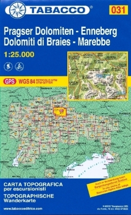 Tabacco topographische Wanderkarte Pragser Dolomiten, Enneberg. Dolomiti di Braies, Marebbe