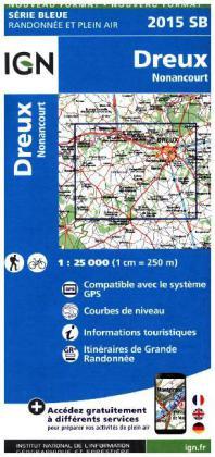 IGN Karte, Carte de randonnée (et plein air) Dreux Nonancourt (francouzsky)