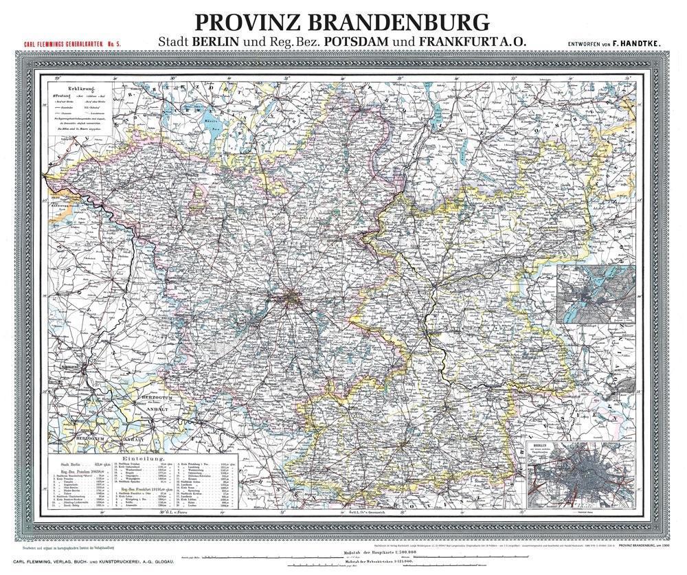 Historische Karte: Provinz BRANDENBURG im Deutschen Reich - um 1900 [gerollt] (německy)