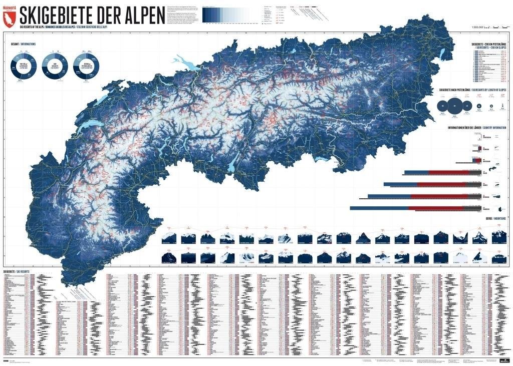 609 Skigebiete der Alpen 1 : 800.000