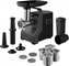 Robustní mlecí nůž a kotouče jsou vyrobeny z odolné oceli, která zajistí dlouhou životnost a spolehlivý výkon. Praktickou součástí je plastová plnicí miska, protlačovač, variabilní nástavec na klobásy i pokrm kubbe a také kráječ a struhadlo s několika funkcemi - od tenkého krájení po hrubé a jemné strouhání, které zvládá i tvrdý sýr a ořechy. Protiskluzové nožky zajišťují stabilitu zařízení během provozu, takže práce s mlýnkem je bezpečná a pohodlná.