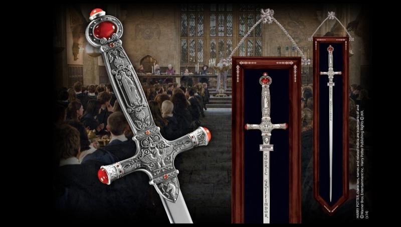 Autentická replika meče zakladatele Nebelvírské koleje Godrika Nebelvíra, tak jak ho znáte z filmů o Harrym Potterovi. Jílec je vykládaný červenými kameny kabošon. Meč měří na délku cca 86 cm. Meč je permanentně připojen k dřevěné desce, na které si ho můžete zavěsit na zeď. Replika je velmi...