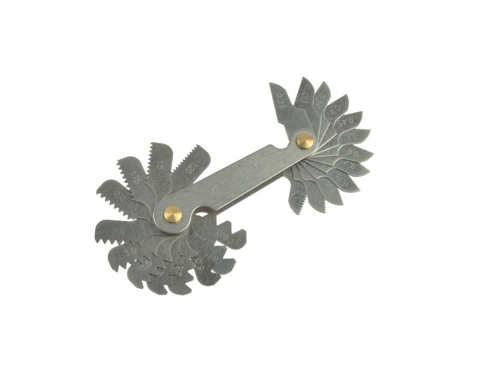 Měrka závitů 24ks, 0,25-6mmIndikátor osnovy metrického závitu je měřicí nástroj používaný k identifikaci stoupání závitu.Vlastnosti výrobku:měřicí pásy na stupnici od 0,25 do 6 mmpočet: 24 listů číst celé