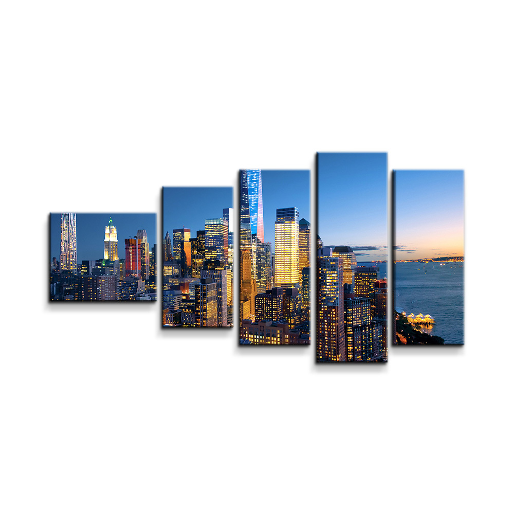 Obraz - 5-dílný Noční mrakodrapy: 100x60 cm
