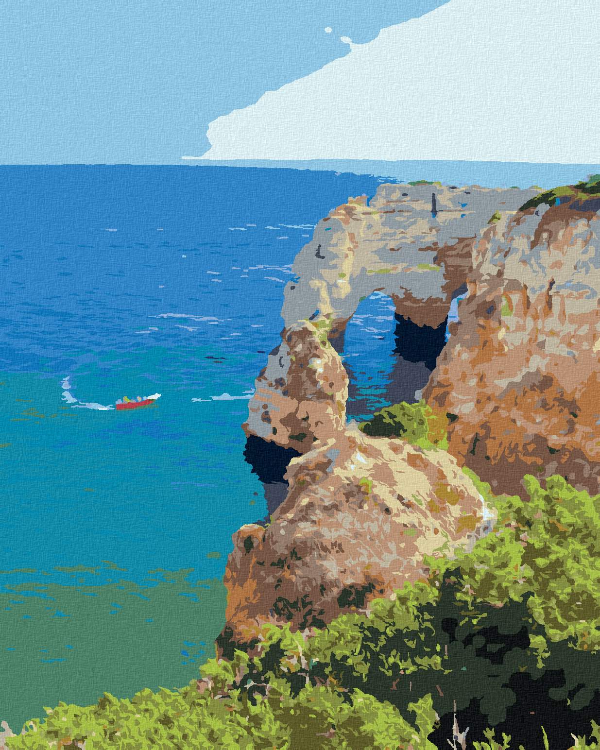Malování podle čísel - LETNÍ KRAJINA PORTUGALSKÉHO POBŘEŽÍ - 80x100 cm, bez rámu a bez vypnutí plátna
