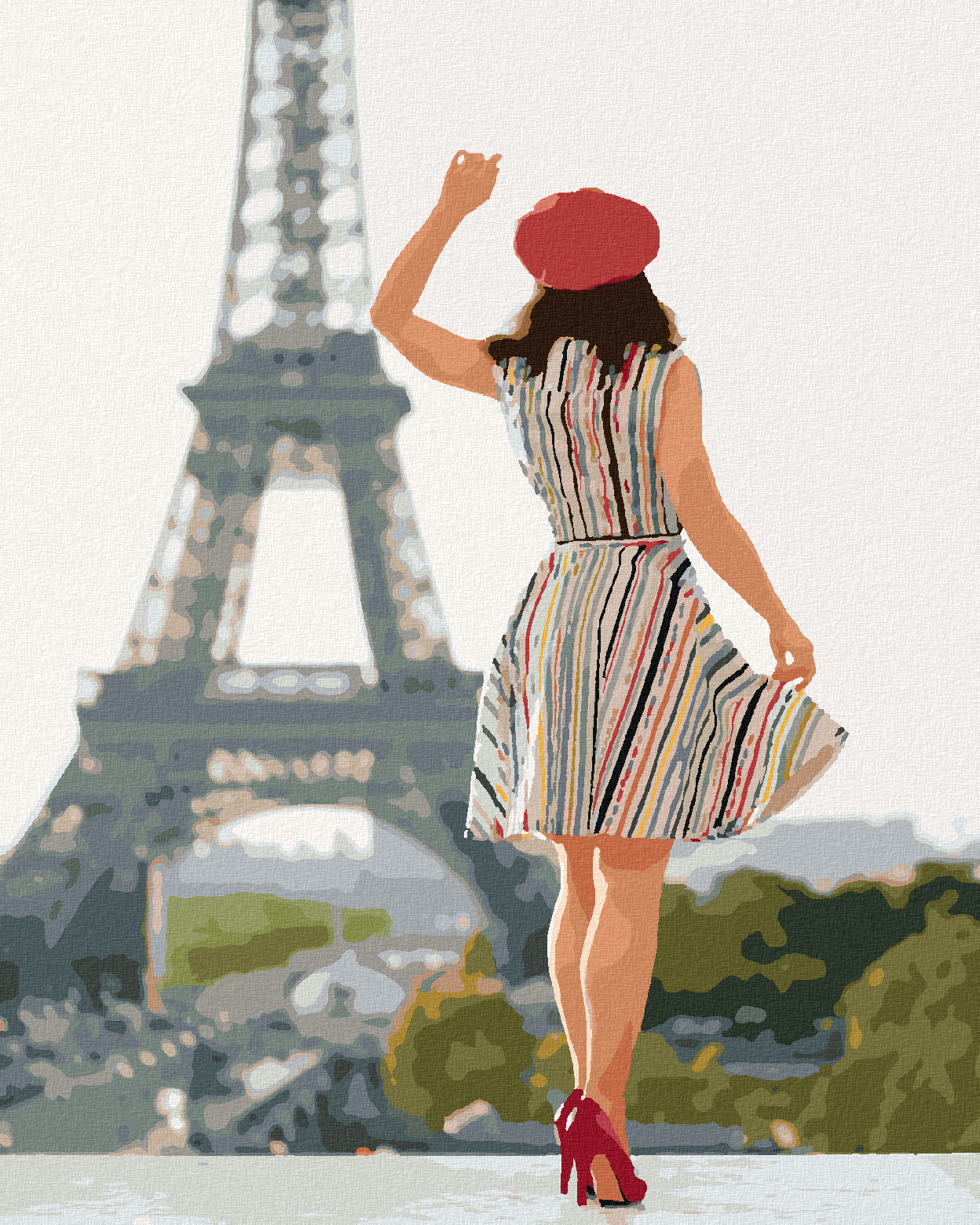 Malování podle čísel - ŽENA U EIFFELOVY VĚŽE - 80x100 cm, bez rámu a bez vypnutí plátna