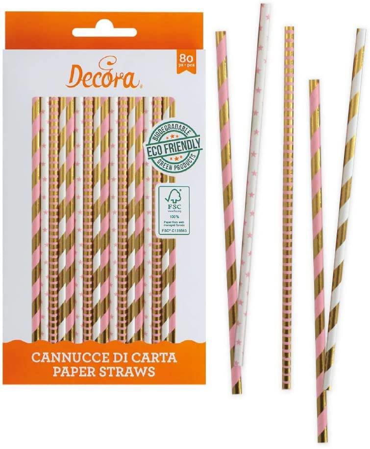 Papírová brčka 80ks růžovo zlatá - Decora