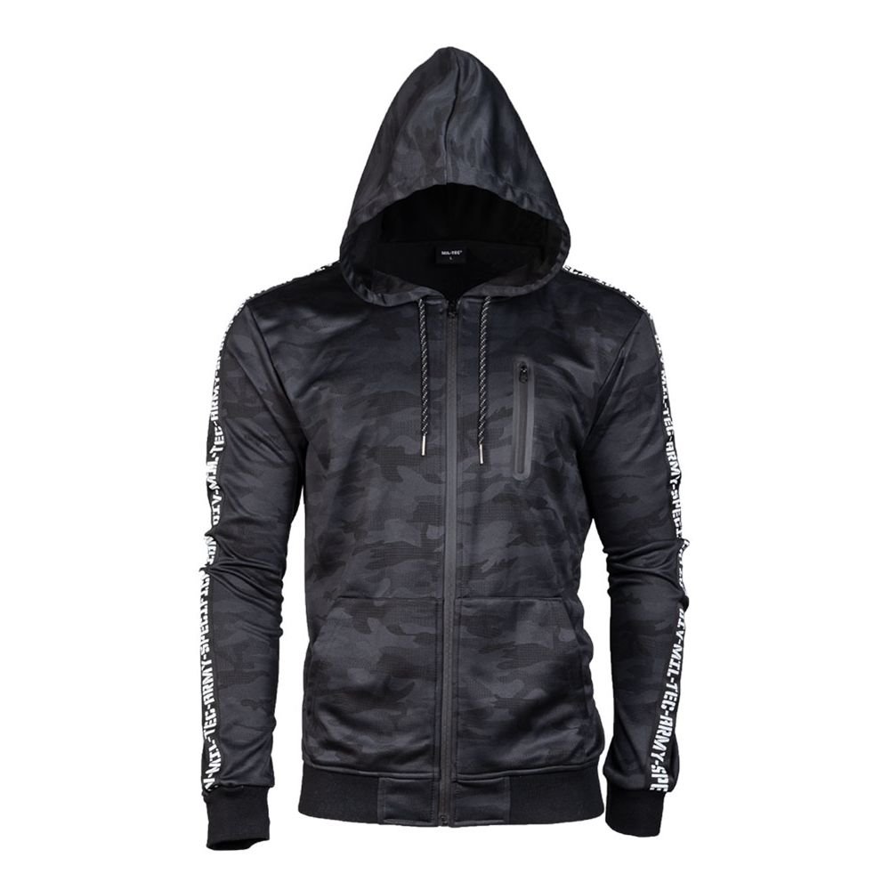Pohodlná a lehká mikina v kamufláži DARK CAMO od německé značky MIL-TEC. Mikina má velikostně nastavitelnou kapuci, vodotěsný centrální zip a plochou hrudní kapsu. číst celé