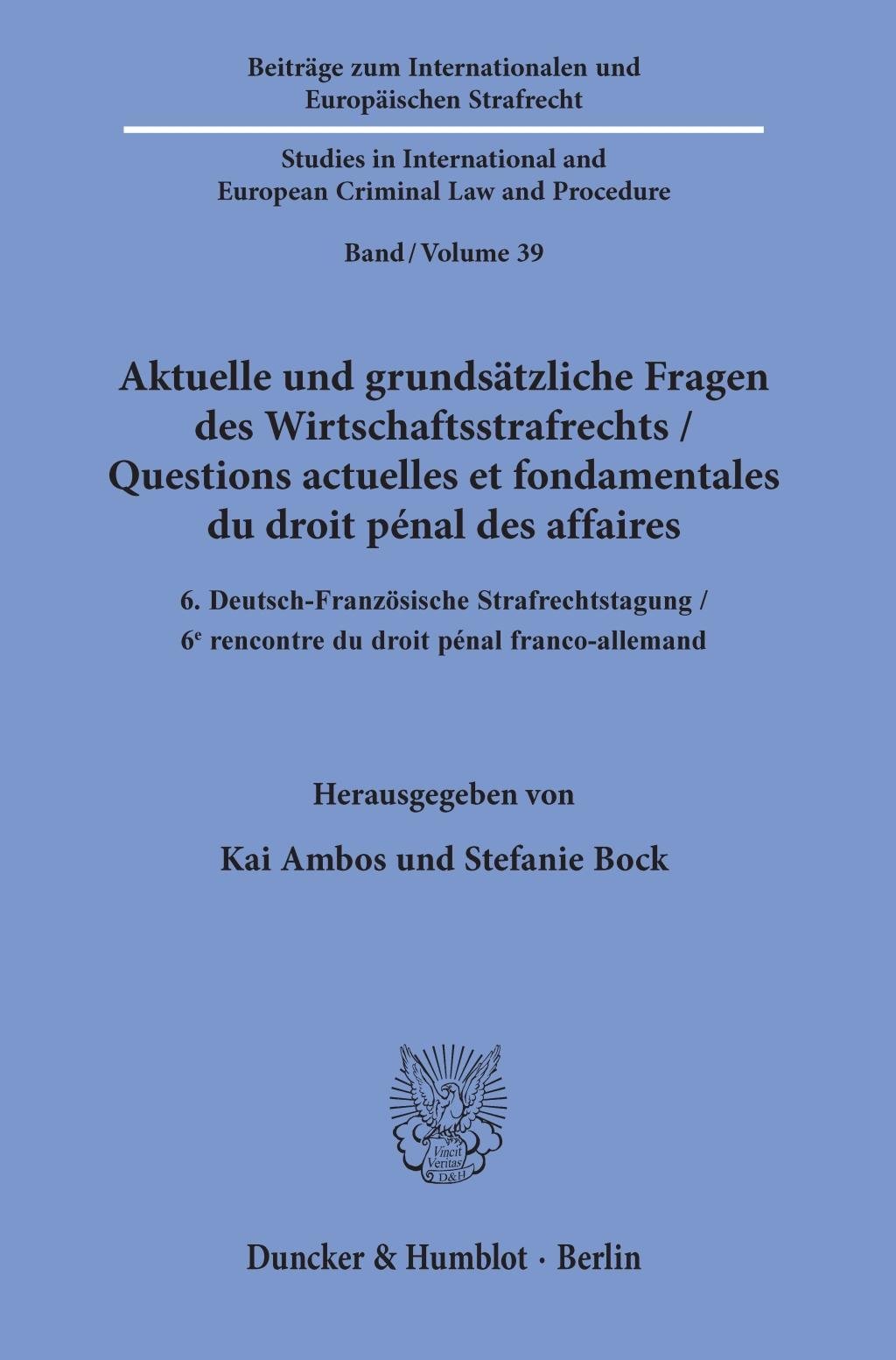 Aktuelle und grundsätzliche Fragen des Wirtschaftsstrafrechts / Questions actuelles et fondamentales du droit pénal des affaires