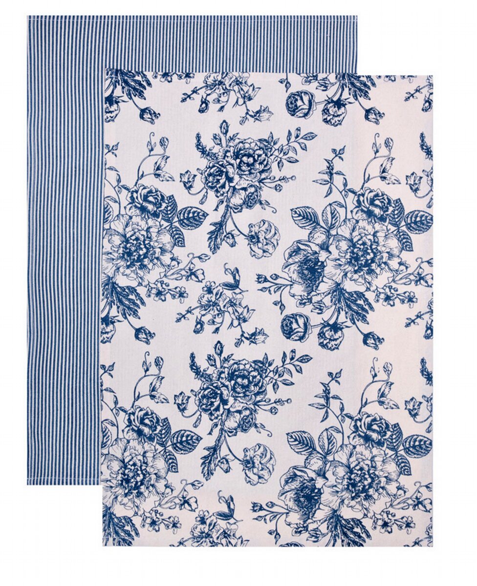 Sada kuchyňských utěrek | NELE | modrá v květinách | 2*45x65 cm | 703843 Homla