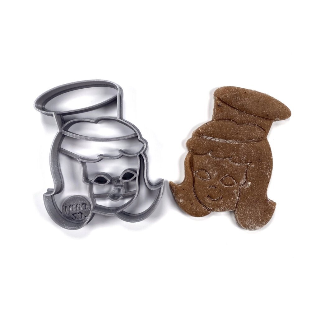 Plastové 3D vykrajovátko hlavy anděla se svatozáří je zhotoveno pomocí 3D tisku, z materiálu PLA plast (materiál biologicky odbouratelný), odolný do 50°C, nevhodný do myčky na nádobí. Středové linie vykrajovátka přenesou do hmoty přesný obraz hlavy andílka. Vhodné pro polotuhé hmoty jako je těsto...