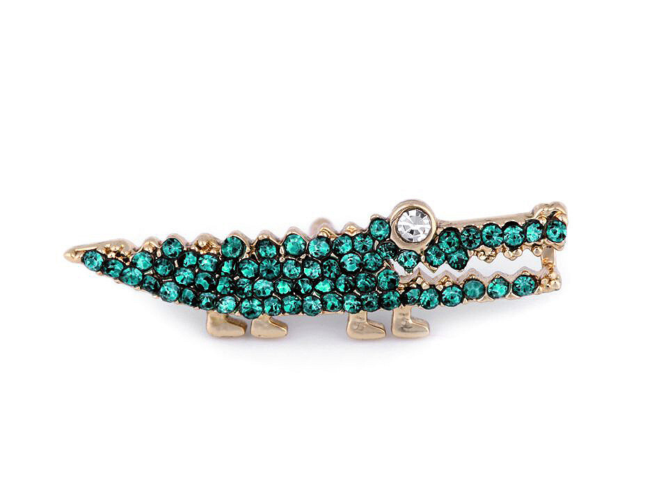 Brož / odznak s broušenými kamínky beruška, krokodýl - 1 ks - 2 zelený tyrkys