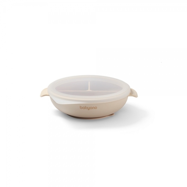 Silikonový talířek s přísavkou a víčkem - béžový