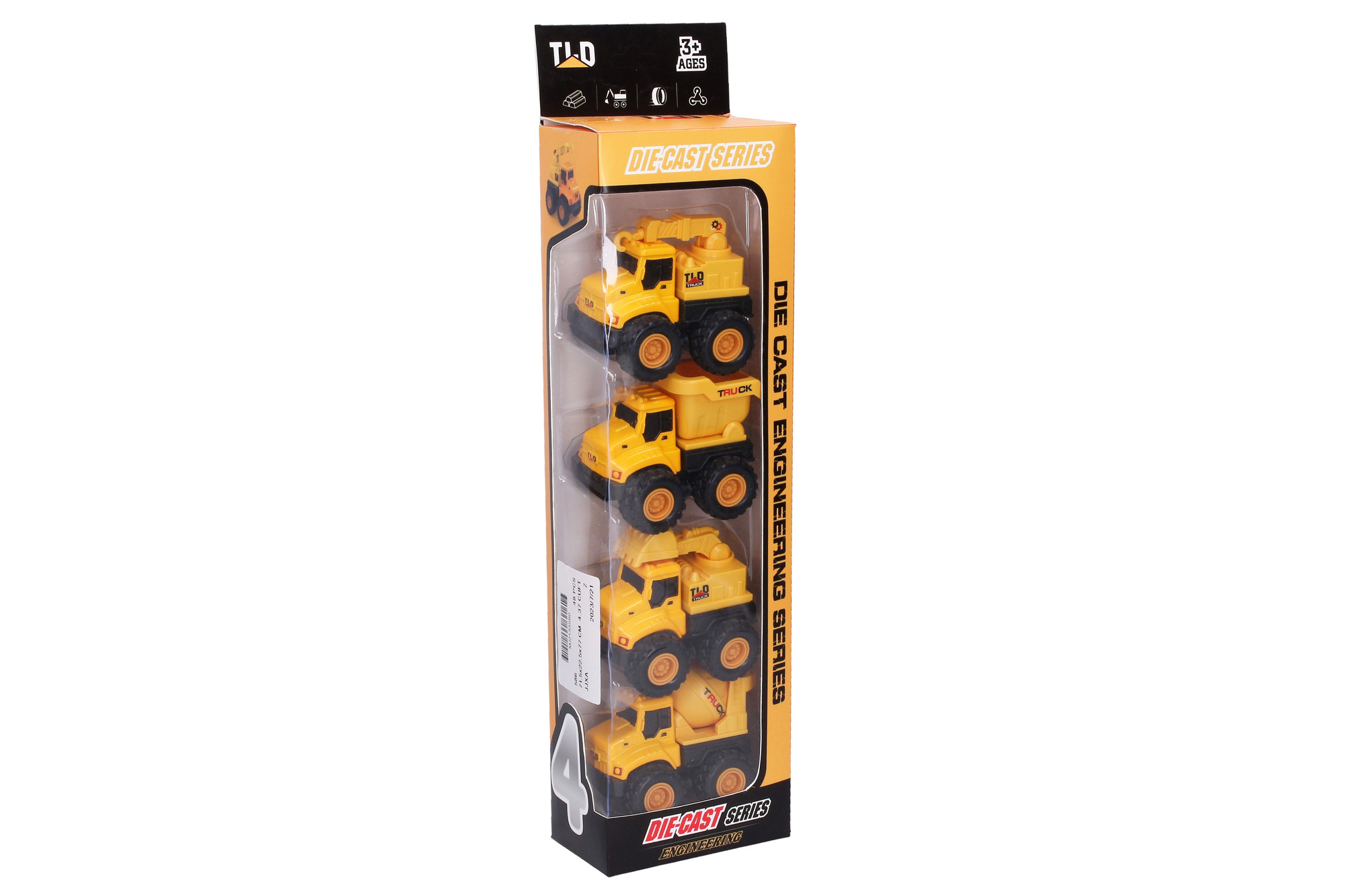 Set obsahuje čtyři realistická auta, která jsou vyrobena z kombinace kovu a plastu, což jim zajišťuje dlouhou životnost a odolnost proti poškození. V sadě najdete autojeřáb, sklápěč, bagr a domíchávač - všechna vozidla jsou detailně zpracovaná a disponují funkčními prvky. Díky možnosti natažení zpět a vyklápěcí korbě či otočnému jeřábu si děti užijí hodiny kreativní hry a stavění. Velikost každého autíčka je příjemných 7,5 x 6 x 6,9 cm, což umožňuje snadné manipulování i menším dětem.