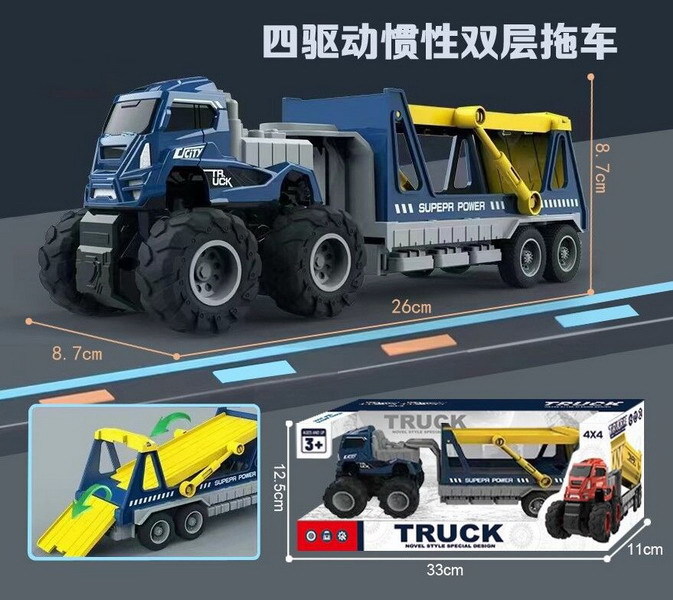 Tahač s přívěsem na auta. Rozměry 26x8,7x8,7 cm. Na setrvačník. číst celé