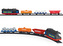 Nákladní vlak na baterie se světlem a se 3 druhy nákladních vagónů, který jezdí po trati dlouhé 2,94 m. číst celé