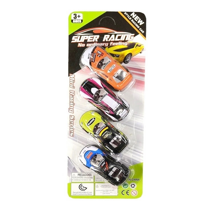 Auta závodní, na zpětný chod, 4 ksHračka je určena pro děti 3+.Rozměr hračky je 8,5cm.Materiál hračky je kov.Balení hračky je blister. číst celé