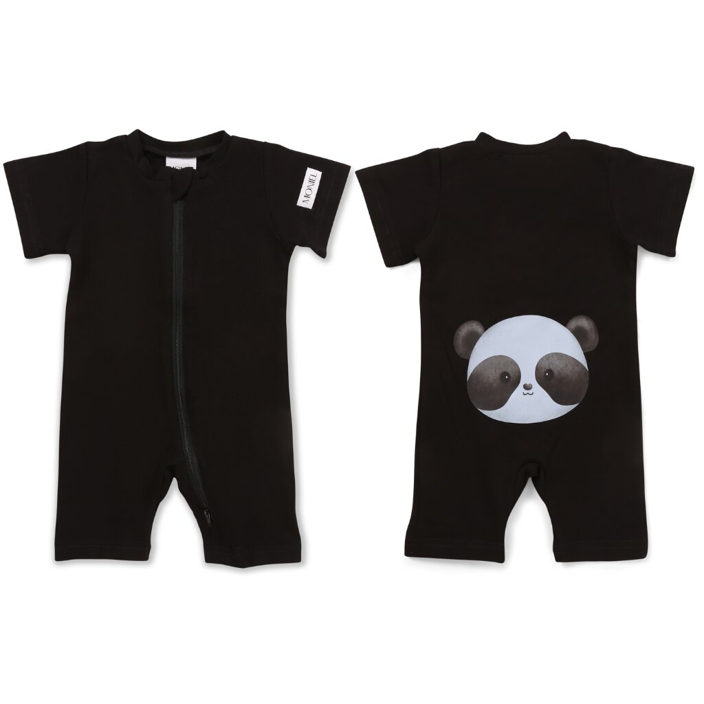 Moniel Dětský overal s krátkým rukávem Panda All Black černá
