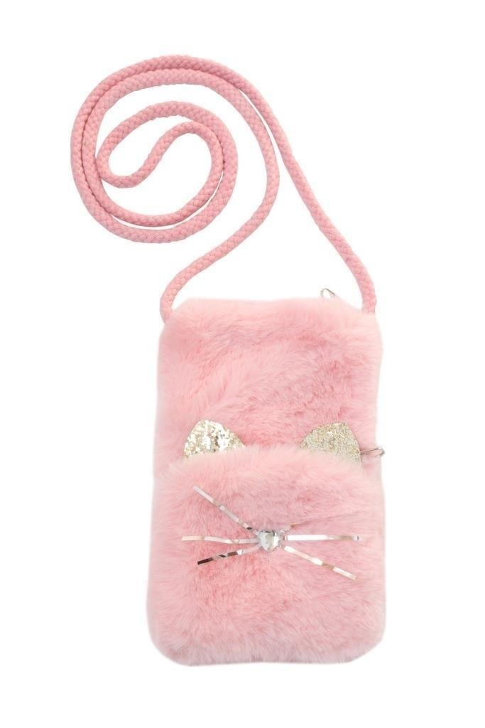 Torebka na telefon kotek. Główna komora zamykana na zamek, z dodatkową kieszonka na drobiazgi. Kolor różowy ze złotymi elementami. číst celé