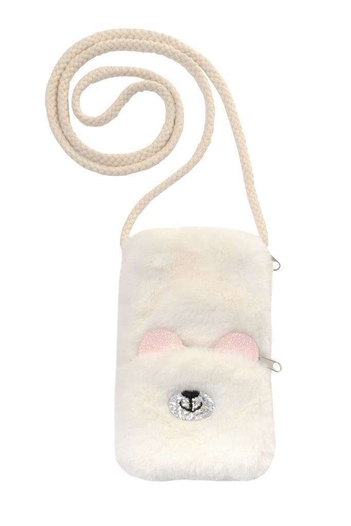 Torebka na telefon miś. Główna komora zamykana na zamek. Dodatkowa kieszonka na drobiazgi. Kolor kremowy. číst celé