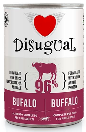 Konzervy Disugual jsou vyráběny z masa určeného k lidské spotřebě, což snižuje negativní dopad na životní prostředí a zároveň zajišťuje maximální kvalitu surovin. Vybrané části masa, plíce a játra z buvola dodávají tomto krmivu nejen nutriční hodnoty, ale i přirozenou chuť, kterou psi ocení.