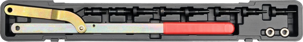 Klíč určený pro napínání řemenů motorových vozidel. Souprava obsahuje celkem 11 kusů příslušenství. Dvě matice, samotný klíč a čepy průměrů 6 - 10 mm; 8 - 11 mm; 10 - 12 mm; 11 - 16 mm. Sada je přehledně uložena v plastovém kufru. číst celé