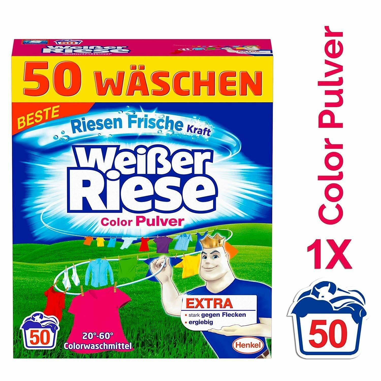 Weisser Color Pulver - parfemovaný německý prací prášek na barevné prádlo - 50 pracích dávekSpeciálně parfemovaný německý prací prášek Weisser Riese Color Pulver je pro milovníky krásných a jemných a čistých vůní. Tento prášek je vhodný na univerzální praní barevného a stálobarevného prádla a je...