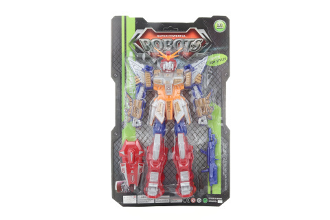 Robot o velikosti cca 28,5 cm .S robotem se dá mechanicky pohybovat rukama a nohama.Po zmáčknutí na zádech začne na hrudi svítit. Provoz na 3 kulaté baterie AG 13 (jsou součástí balení). .Věk 3+ číst celé