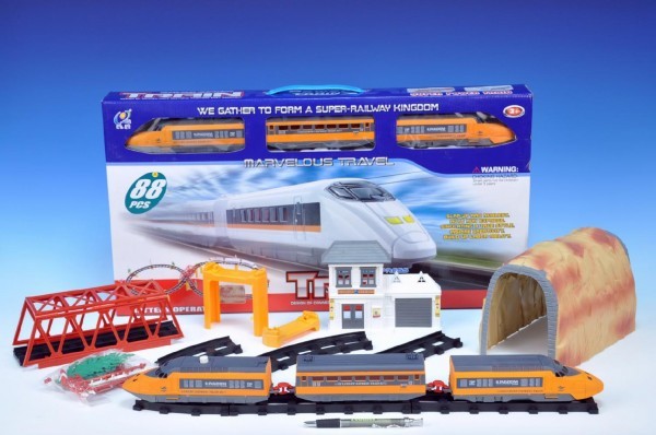 Vlak 49cm plast na baterie se světlem 88 dílů v krabici 59,5x31,5x7cm