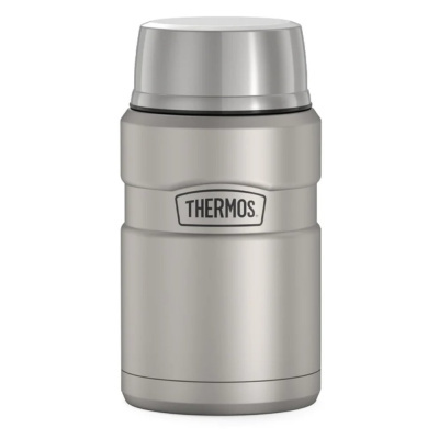 Termoska na jídlo King, Thermos Nerezová vakuově izolovaná termoska na jídlo. Skládá se z dvoustěnného těla termosky, uzávěru a šálku. Široké hrdlo těla termosky zaručuje snadné plnění, nabírání a údržbu termosky. Uzávěr je tvarován pro snadné otevírání/zavírání termosky. Vnější strana šálku je z...