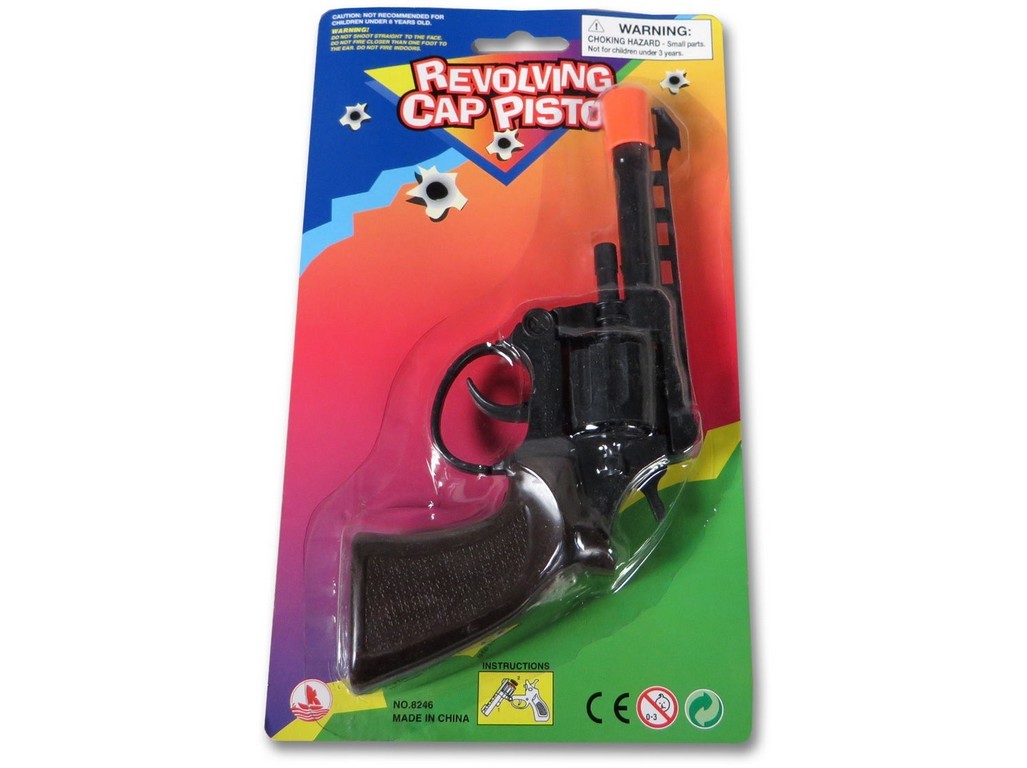 Pistole na kapsle.Nabij revolver a zamiř na cíl!Vyrobeno z plastu.Vhodné pro děti od 3 let. číst celé