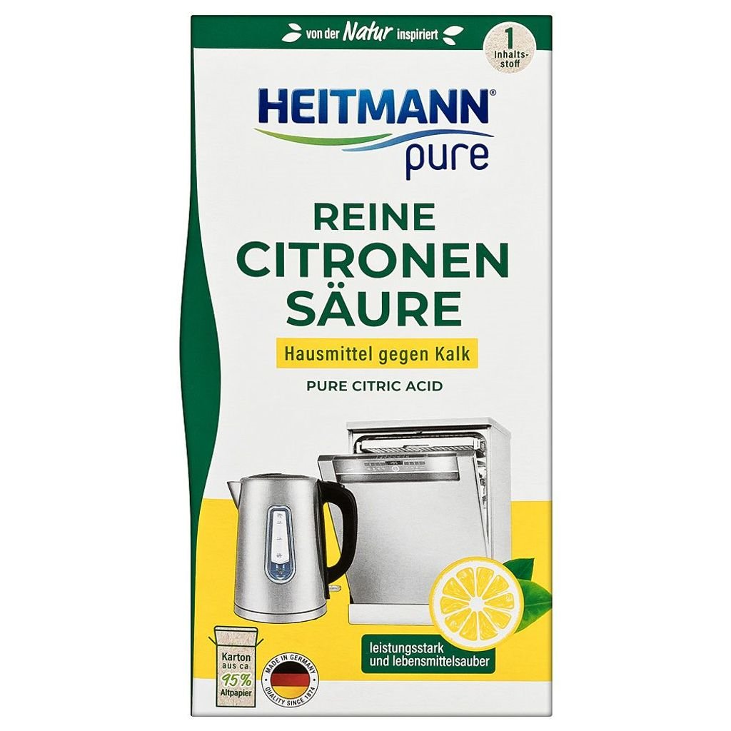 Heitmann Pure - Rychlo-odvápňovač vodního kamene z elektrických spotřebičů - 350gPotřebujete odvápnit kávovar, myčku nebo rychlovarnou konvici? Pokud ano, tak je právě tento produkt vhodnou volbou, jelikož je na bázi přírodních kyselin, které účinně odvápní Váš kávovar, rychlovarnou konvici nebo...