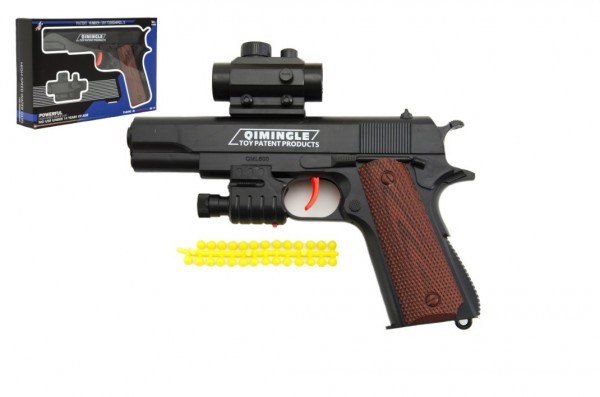 Pistole na měkké kuličky plast 20cm v krabičce 24x15x4cm