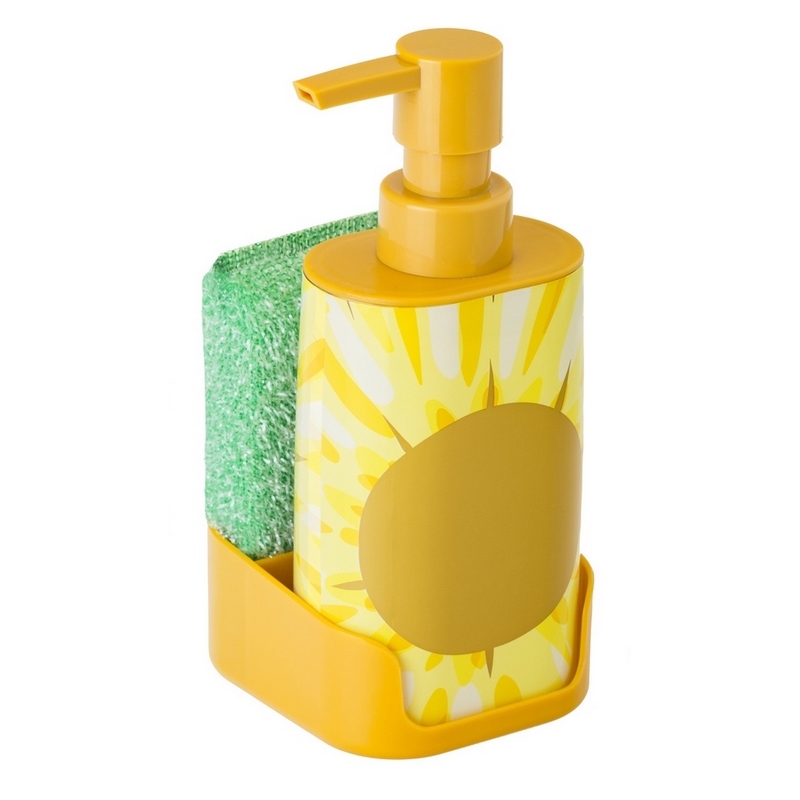 Kompaktní sada s dávkovačem mýdla (vhodný pro mycí prostředek nebo mýdlo na ruce).Houbička na mytí nádobí Lze mýt v myčce nádobí.Objem: 340 mlMateriál: PlastRozměry: 9,5 x 8 x 18 cmVIGAR číst celé