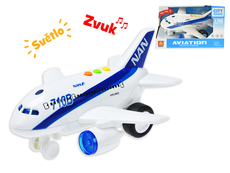 Letadlo dopravní 20cm na setrvačník na baterie se světlem a zvukem v krabičce