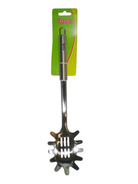 Naběračka na špagety je nepostradatelným pomocníkem zejména při přípravě příloh. Tento výrobek je z prvotřídní ušlechtilé oceli a je vhodný do myčky nádobí. Nerezová rukojeť je uzpůsobena pro zavěšení na závěsnou tyč. Kuchyňské nářadí TORO vytváří ucelenou řadu výrobků.