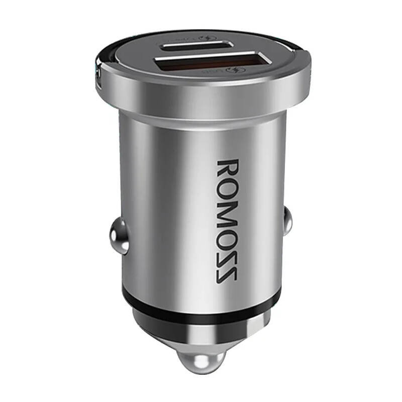 Nabíječka do auta Romoss AU45T, USB + USB-C, PD + QC 45 W (stříbrná)