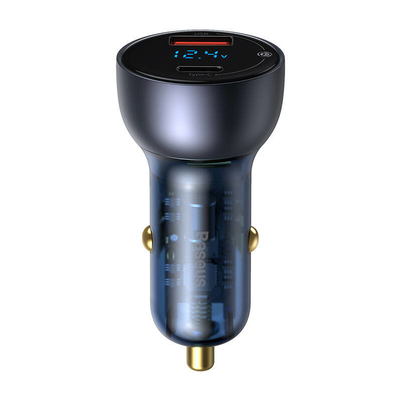 Nabíječka do auta Baseus Particular Digital Display QC+PPS 65W s mini bílým kabelem USB-C s čipem E-mark 1m 100W (černá)